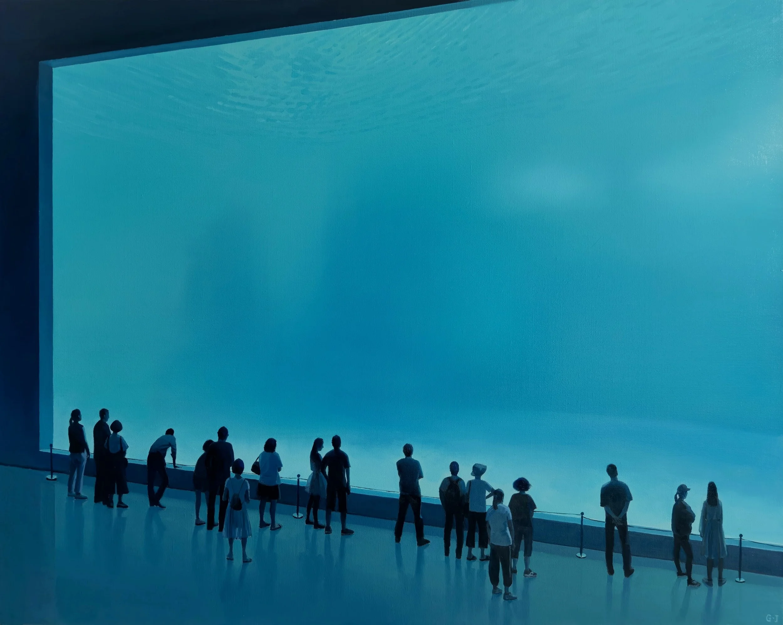 This painting has a similar expression to Art Museum No. 2; both paintings discuss the mutual influence and definition of the space and the people within it. In a zoo, where the crowds gather, there must be a good show going on. If people gather around a huge aquarium, it’s impossible not to have a big fish in it.